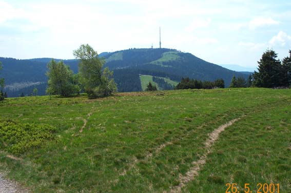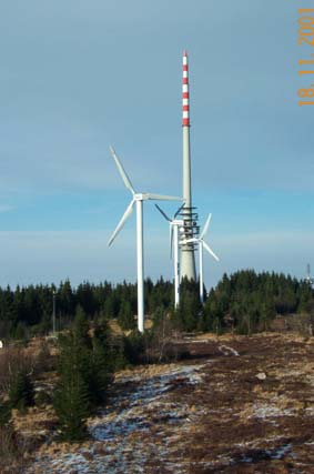 im Hintergrund die Hornisgrinde mit dem Sendeturm und Windrädern.
